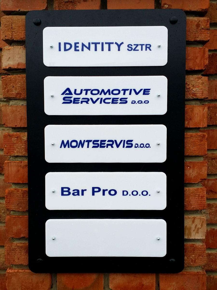 Informacije na tabli mogu biti prezentovane na mnogo načina, od lepljenja PVC folije štampane na ploteru ili isečene na kateru, preko graviranja na samoj tabli do izrade reljefnih elemenata koji se nanose direktno na nju.
